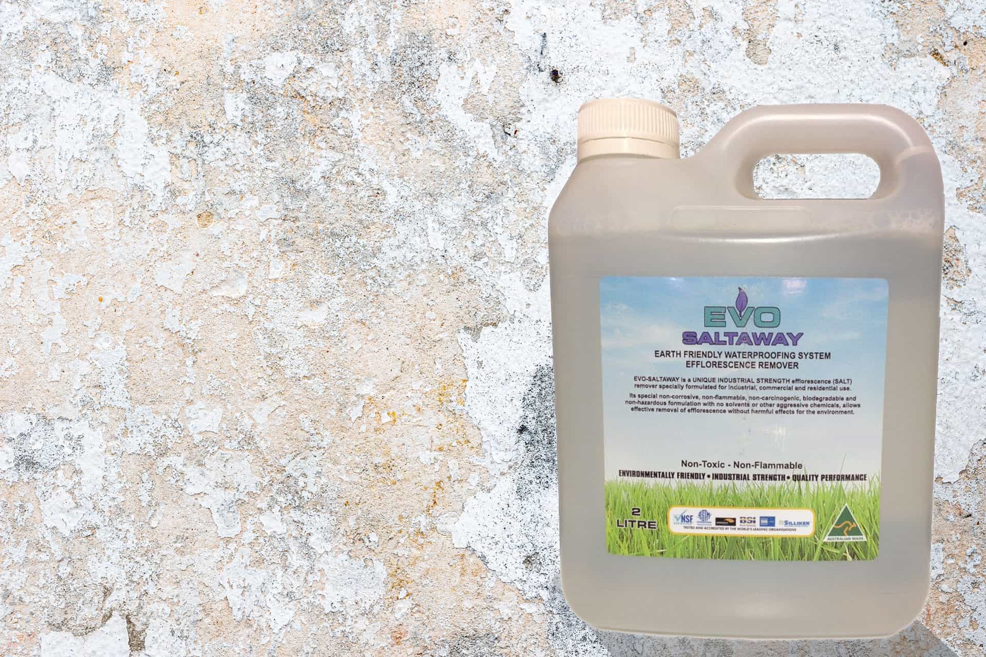 EVO-SALTAWAY is an industrial strength efflorescence (SALT) remover specially formulated for industrial, commercial and residential use for concrete and masonry surfaces. If you notice white patches seeping through cracks, this is likely the best solution for your surface.